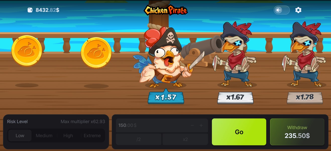 The first session I played, I set my bet at $1 just to test the waters. The multiplier started climbing slowly: ×1.2, ×1.5, ×2… I hesitated, thinking maybe I should let it run. Then — CRASH. Gone. Just like that, my dollar was toast. Welcome to the life of a pirate chicken.