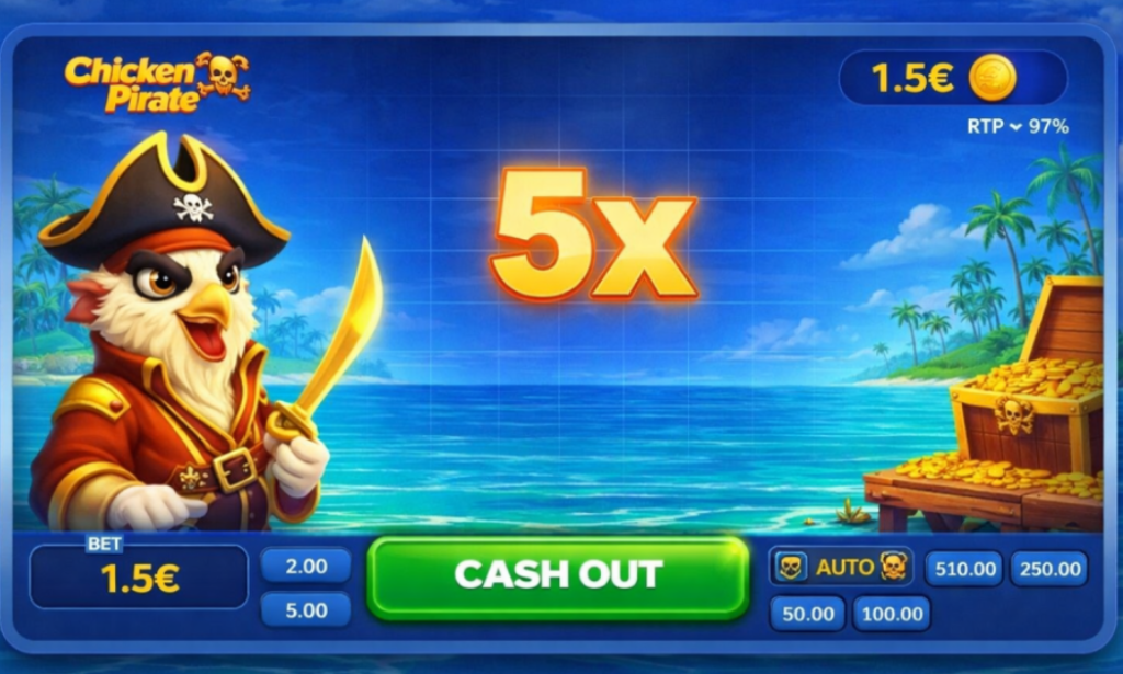 Chicken Pirate highlights this mechanic clearly by placing the multiplier at the centre of the interface. The rest of the screen remains visually simple so that the player’s attention remains focused on the changing number. Watching the multiplier grow becomes the main activity of the round.
