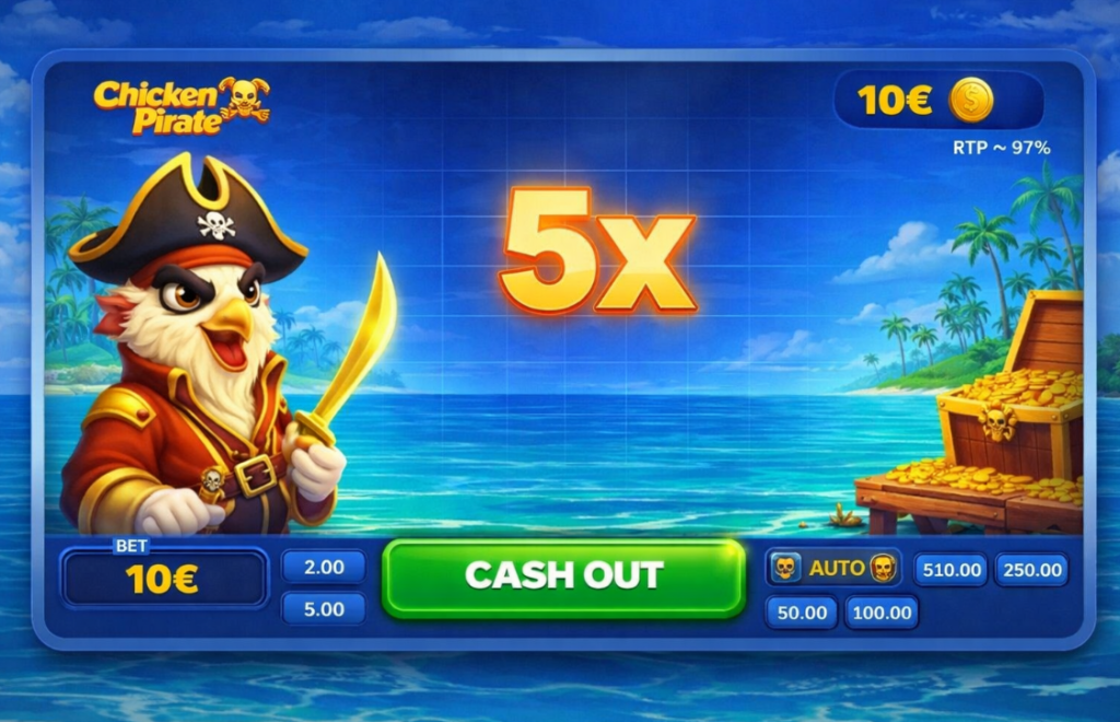 For players approaching Chicken Pirate with a €10 balance, the session typically becomes a series of repeated decision moments rather than a search for a single dramatic outcome. Watching the multiplier grow, judging the right moment to collect, and responding to sudden crashes form the entire structure of the game.