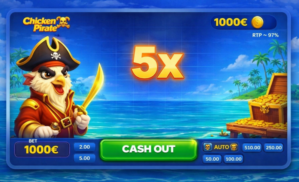 Ultimately, Chicken Pirate remains a game built on timing. The decision to collect is always central, regardless of the balance behind the stake. A €1000 deposit simply allows that decision to be made across a larger number of rounds, revealing the full structure of the game as it unfolds.