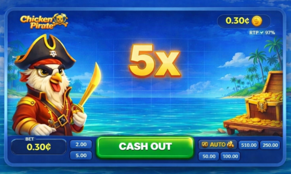When a session begins with a very small balance, the way players interact with the collect button often changes in subtle but noticeable ways. In Chicken Pirate, this button represents the moment of control within every round. The player decides whether to secure the current multiplier or continue waiting as the value rises. With a larger balance, that decision can feel less urgent because the session contains more opportunities to participate. With a 30 cent deposit, the situation becomes more sensitive to timing and more focused on the immediate outcome of each round.