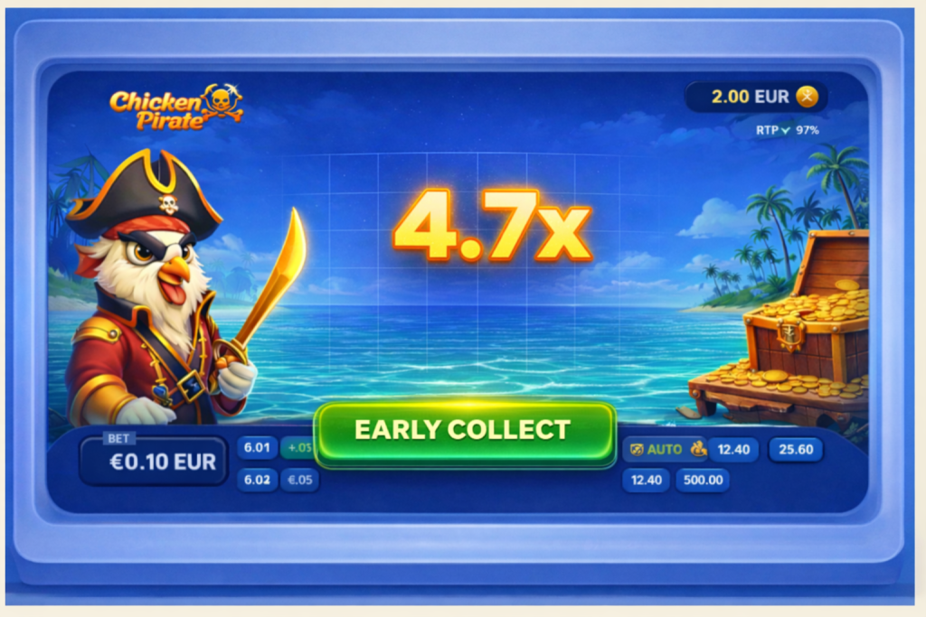 However, this is where the key misunderstanding lies. In a slot, reaching a bonus typically shifts the balance of the game in favour of the player, even if only temporarily. In Chicken Pirate, reaching a higher multiplier does not change the underlying system. The probability of the round ending remains constant in principle. The only thing that has changed is how much is at stake.