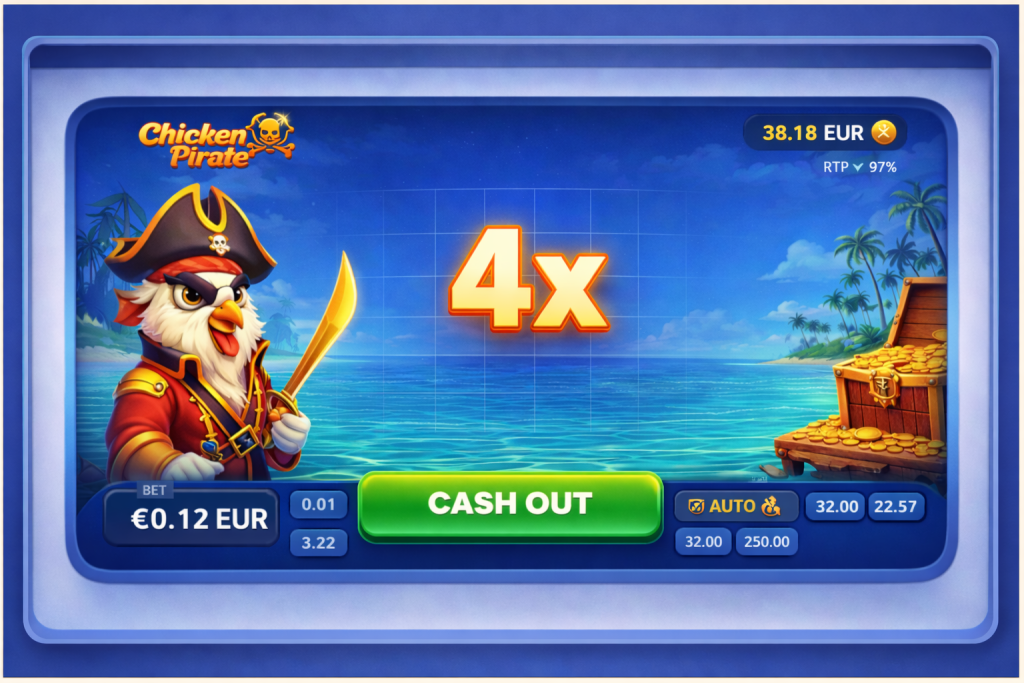 In Chicken Pirate, the repetition is constant. The same mechanic is presented again and again, without variation. The multiplier rises, the decision is made, the round ends. On its own, this loop is simple and unchanging.